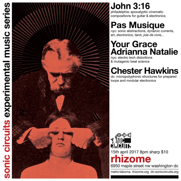 CHESTER HAWKINS [washington dc]: Over 30 years of audio adventures. Recorded and performed improvised psychedelic actions as BLUE SAUSAGE INFANT until 2015. Now without the alias, Hawkins uses mixtures of electronics, strings, and concrète sources to generate vast soundscapes for a deeply interior cinema. 2017 saw the release of Hawkins' soundtrack to Tim Ashby's film "Pale Trees," a sprawling carpet of slowly evolving electronic atmospheres for modular synths and lapsteel guitars. Hawkins' current work is the score and recording of a full 24-hour composition designed to loop seamlessly, providing an endless and fully immersive ecosystem of deep audio. The Rhizome performance will demonstrate a trance-inducing segment of this piece via dense microtonal harmonies, mountains of undulating loops, and analog electronic tone clusters.