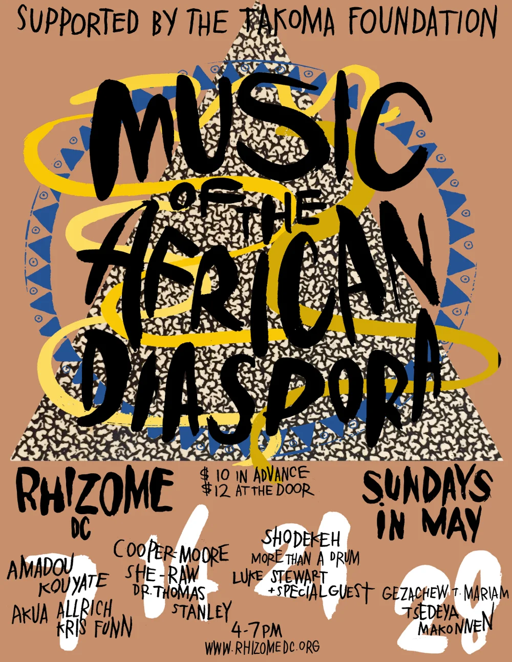 With support from the Takoma Foundation, Rhizome presents the African Diaspora Music Series, with concerts every Sunday afternoon in May.