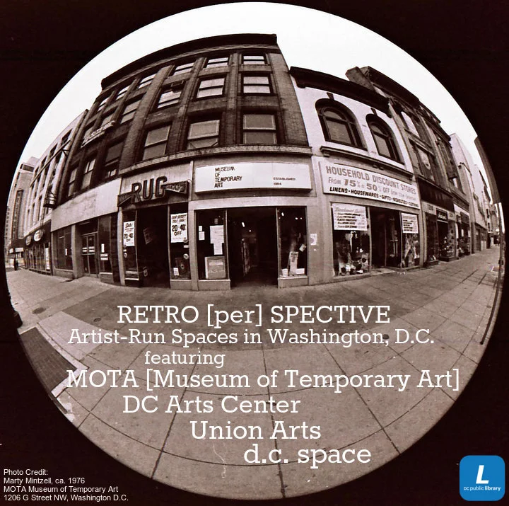 “RETRO [per] SPECTIVE: Artist-Run Spaces in Washington DC” is a month-long collaborative program between Rhizome and the DC Public Library Special Collections, featuring live performances every Friday night through the month of October, representing select artist venues: The Museum of Temporary Art (MOTA), d.c. space, Union Arts, and the DC Arts Center. The exhibition includes materials on loan from the personal archives of venue founders; from DCPL Special Collections; the Archives of American Art; and excerpts from historical audio and video recordings from the past.