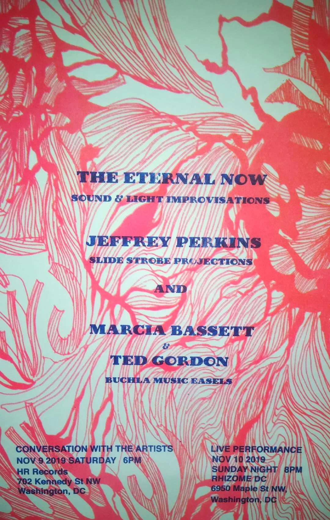 MARCIA BASSETT & TED GORDON / JEFFREY PERKINS play Buchla Music Easels with filmmaker and light artist Jeffrey Perkins projecting “pure light” a variation of his analog color strobe projections which he premiered in 1968 to accompany Terry Riley’s LP “In C”.
