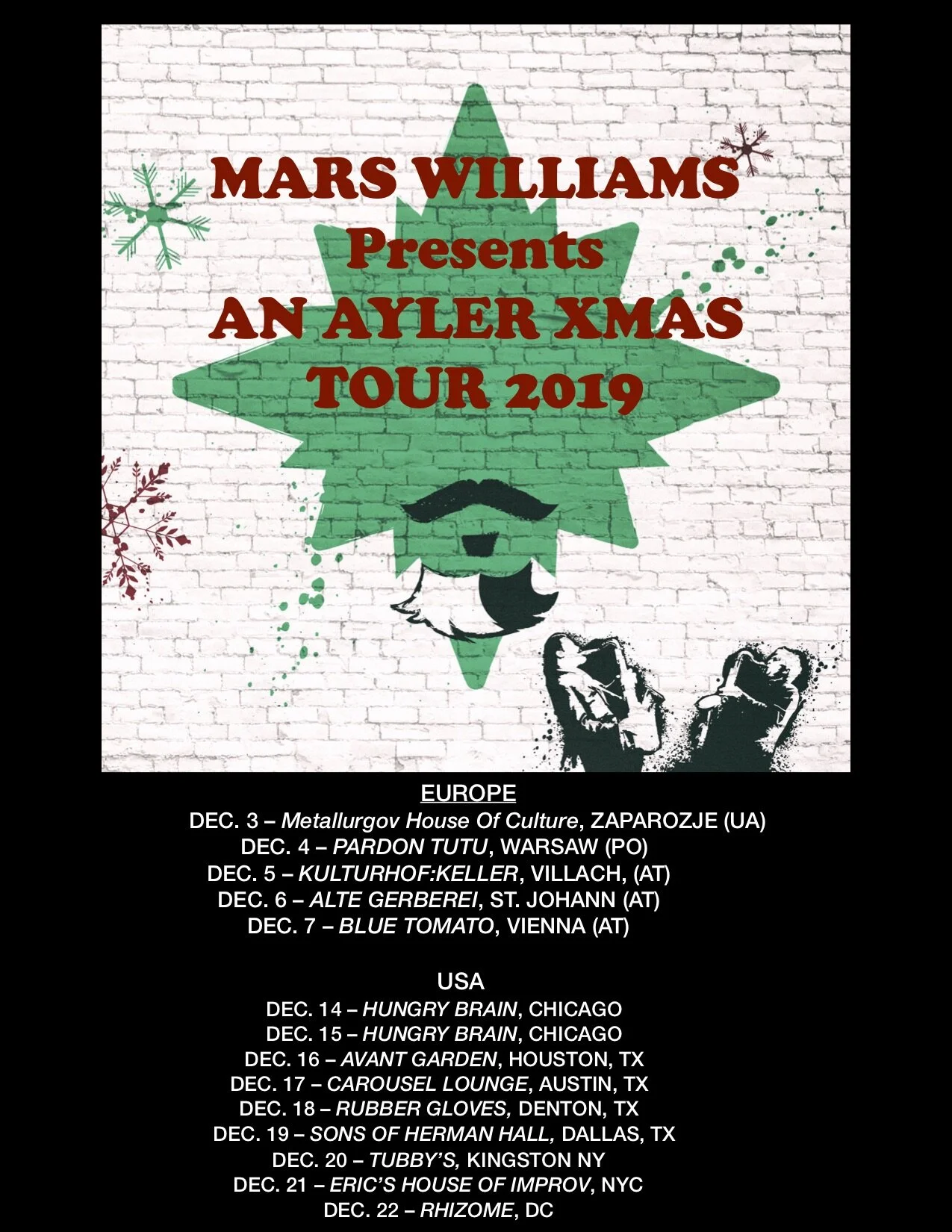 For the last few years, along with the annual Chicago performances, Williams has brought “An Ayler Xmas” to select cities in the US & Europe, featuring local improvisers from each host city.