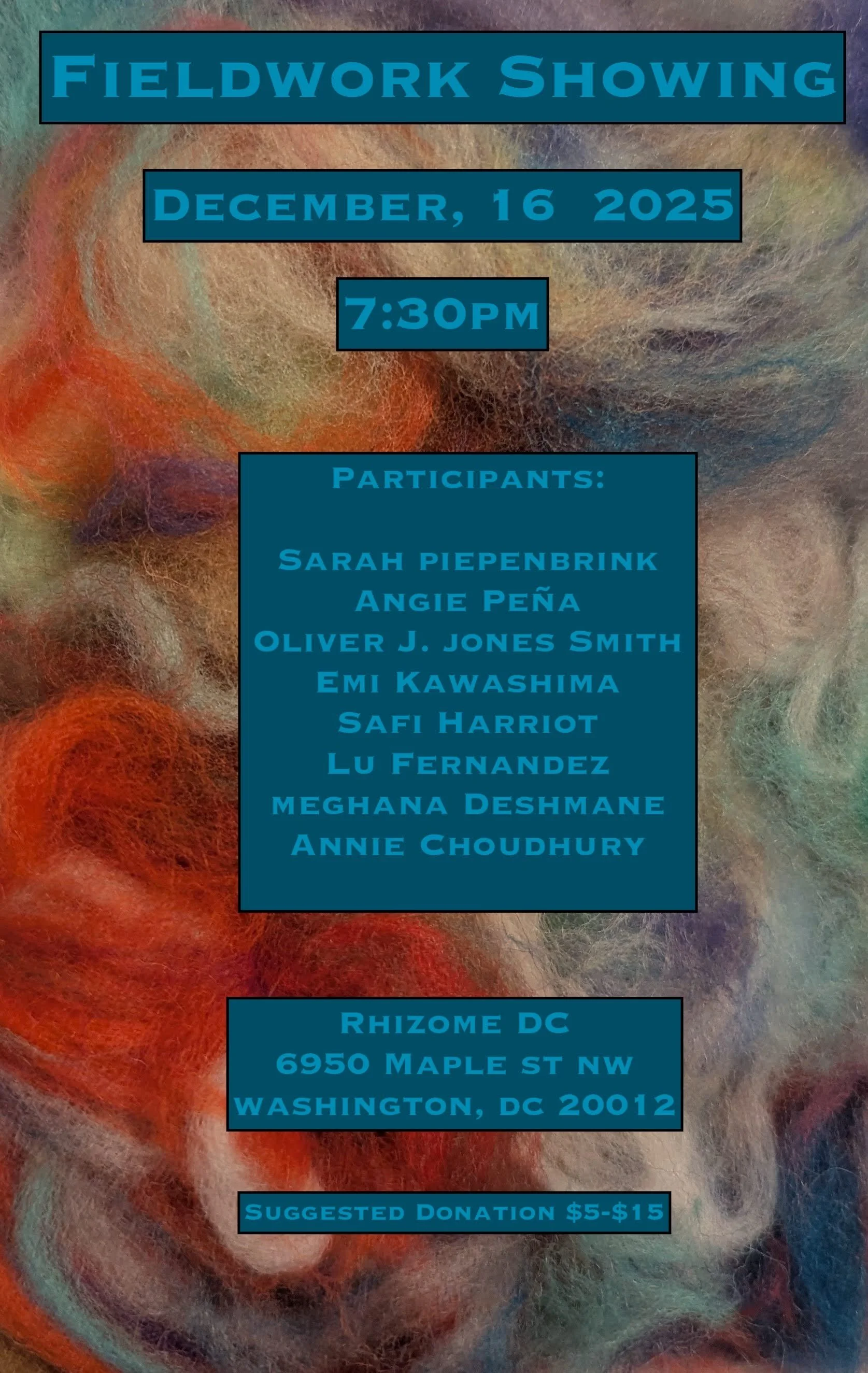 Fieldwork is a non-directorial feedback method that supports the development of new work without the pressure of producing a finished product. Participants meet weekly to share works-in-progress and exchange objective, artist-to-artist feedback in a studio setting, guided by an experienced peer-facilitator. The session culminates with this opportunity for participants to share work in an informal showing.