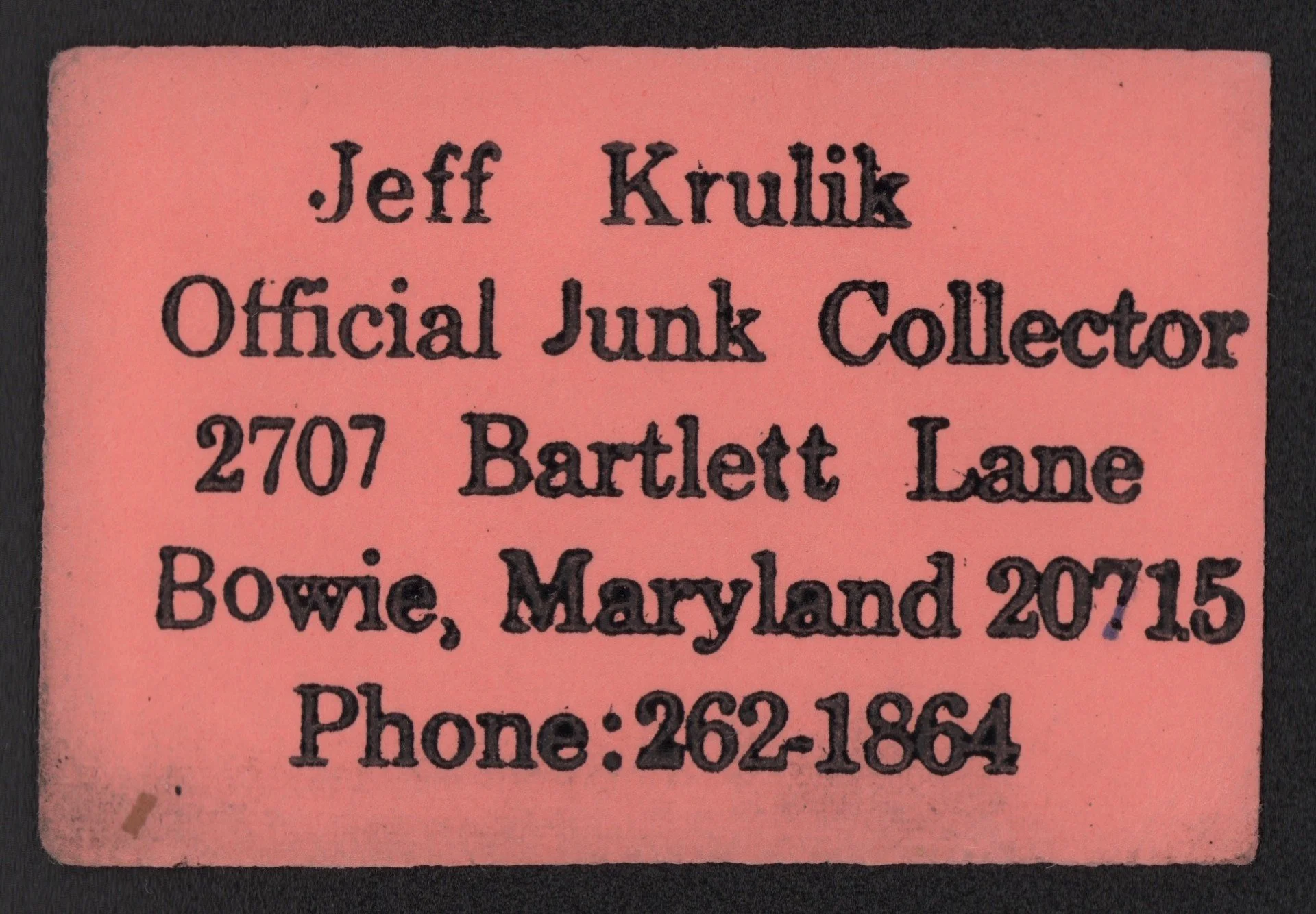Jeff Krulik: Official Junk Collector is a business card created in Jeff Krulik’s 7th grade shop class. Over 50 years later, it’s still an accurate job title, and also the name for this evening’s program, a workshop of new video content, rumination on narration, and pondering thought balloons that may be part of an upcoming documentary presentation in early 2026. See and hear Jeff do his best to share what is swirling around his head on this new project, featuring Jeff’s 25-year plus relationship with a sometimes brilliant, sometimes deranged character. But who really is the deranged one in this mirror image journey?