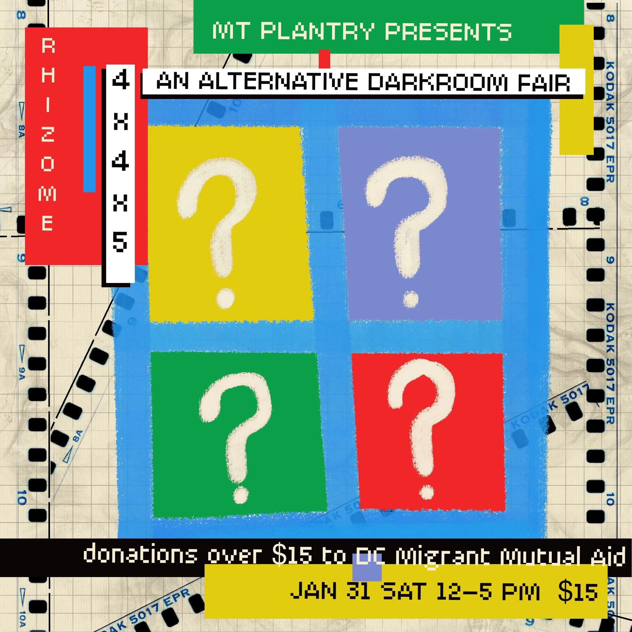Mt Plantry is back at Rhizome on January 31st for 4x4x5: An Alternative Darkroom Fair! When you enter, we'll snap a 4"x5" portrait (of you, your art, an object you love, anything!) which you'll develop in coffee. Then you'll take the negative to 3 different stations, each with its own alternative printing process to make 3 very different printed interpretations of your negative. So you'll leave with 4 4x5s (aka 4x4x5!). Keep an eye out as we reveal each of the alt processes over the next few weeks! Admission is $15, with donations over $15 going to DC Migrant Mutual Aid.
