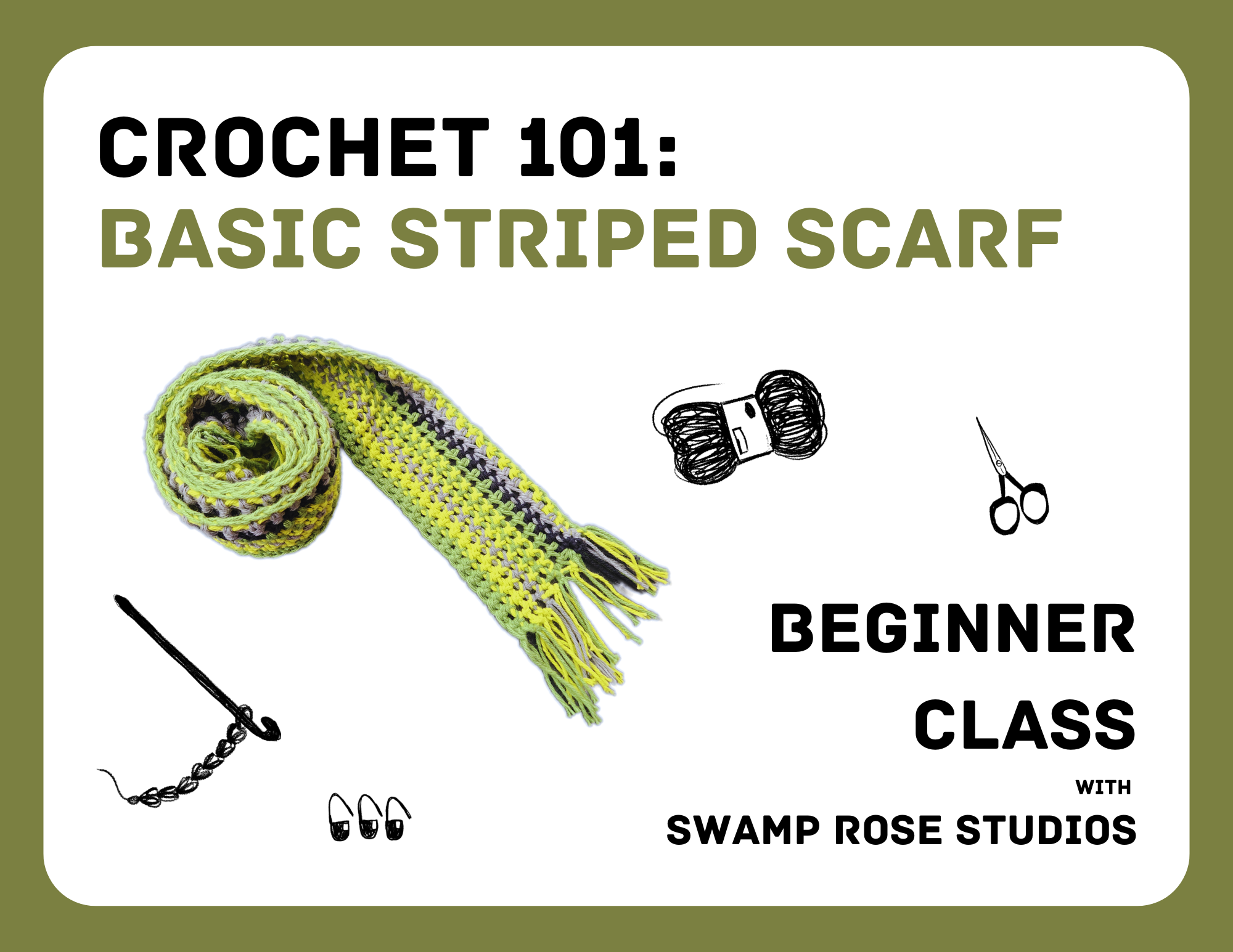 January chill got you down? Come and learn how to make a cozy striped scarf that will keep you warm until spring! No experience necessary. We will learn how to chain stitch, single crochet, and change colors.