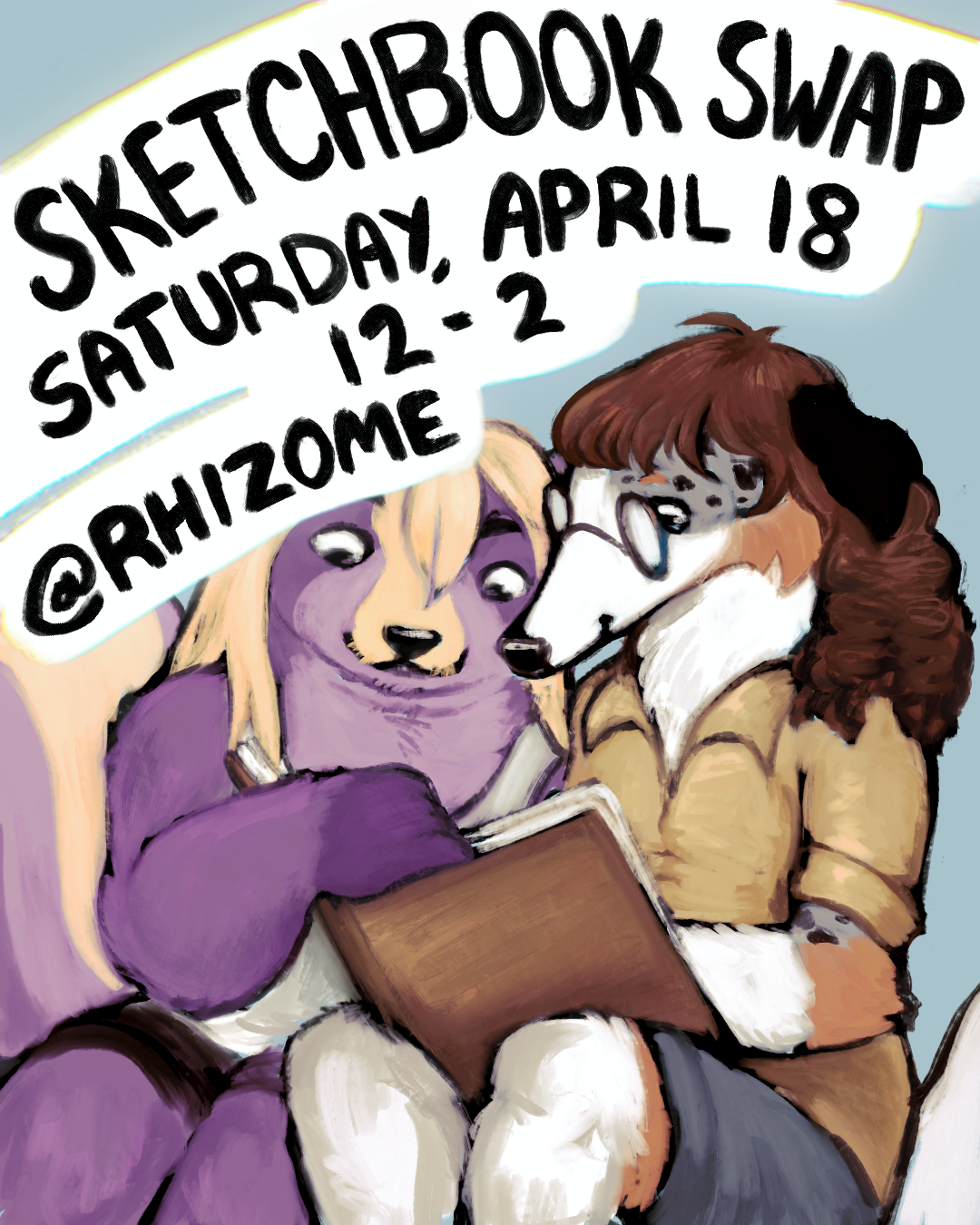 A collaborative drawing activity popular at furry conventions around the world, now coming to Rhizome! Bring a sketchbook, your favorite art tools, and a written or drawn reference sheet (an original character, prompt, or idea you’d like someone to draw). Participants leave their sketchbook at a table at the front of the room and pick up another artist’s book to draw in, returning it when finished and choosing a new one.
