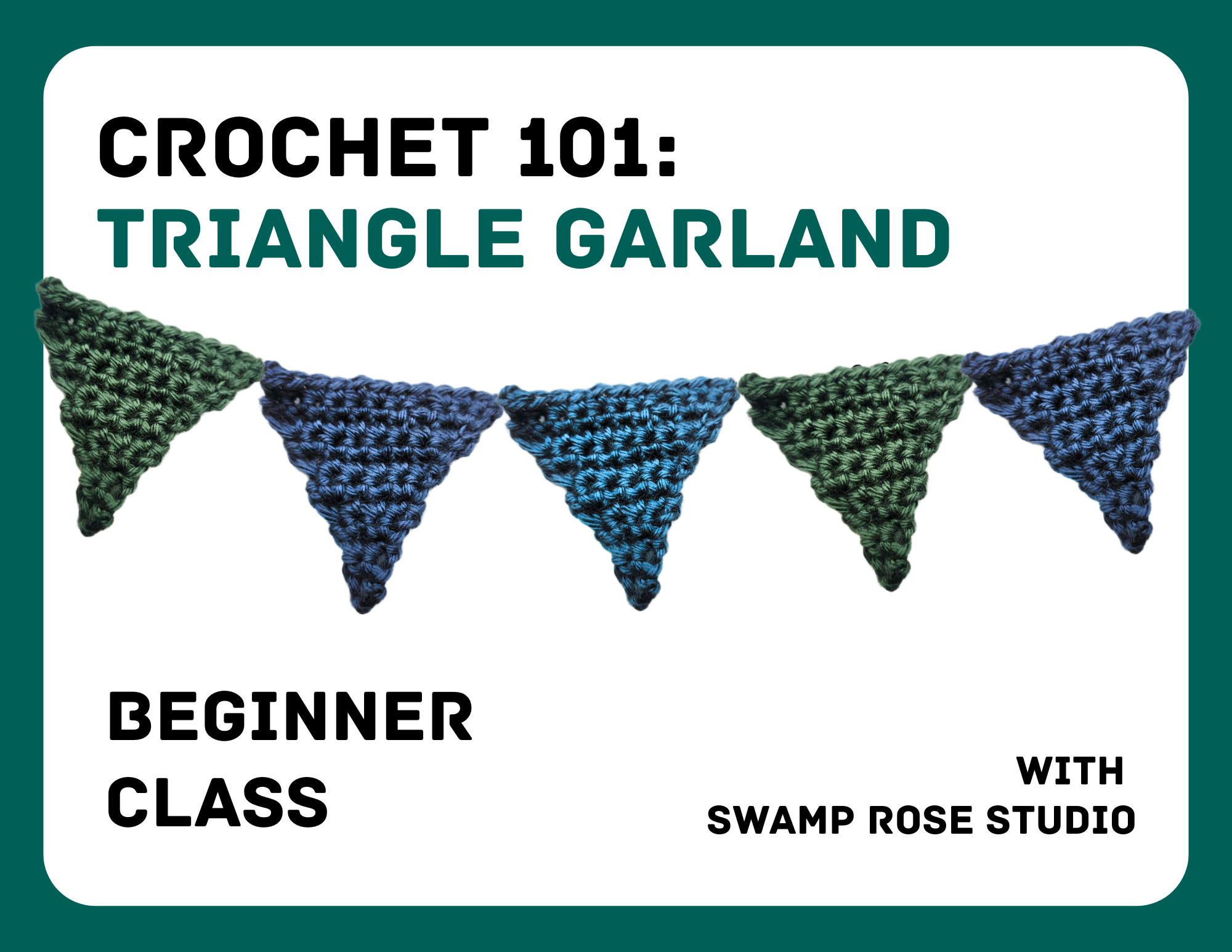 Join Annie from Swamp Rose Studio to learn how to make a crochet garland! We will learn how to use single crochet increases to create triangles, which we can then link together into a colorful garland!